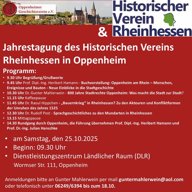 Oppenheim feiert in diesem Jahr 800 Jahre Stadtrechte und das Deutsche Weinbaumuseum feiert seinen 45. Geburtstag! Daher hat sich der „Verein der Freunde und Förderer des Deutschen Weinbaumuseums“ entschieden, diese beiden Geburtstage mit einer ...