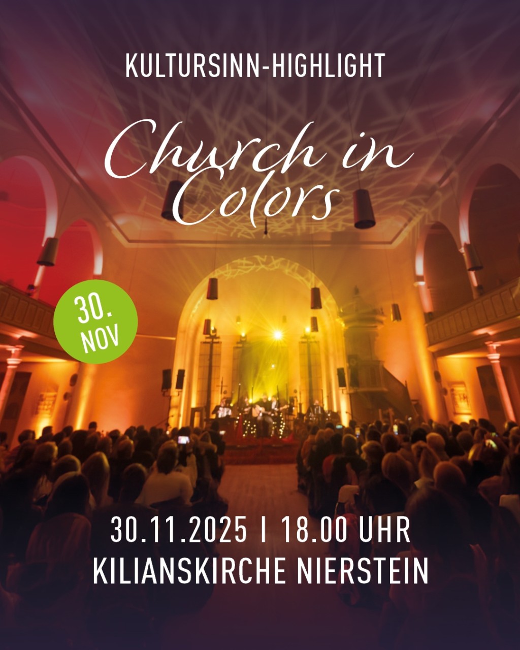 Church in Colors war bereits 2023 in Nierstein, damals in der Martinskirche. Sichert Euch gleich eine oder mehrere der wenigen Restkarten.