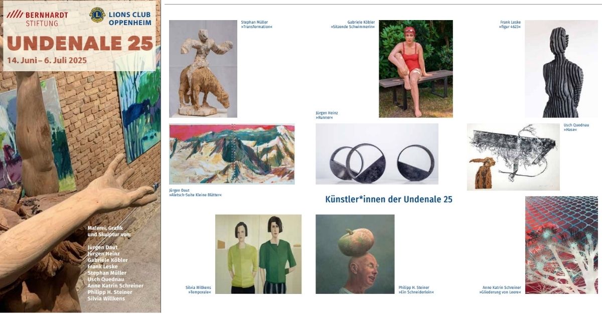 Im Juni beginnt wieder ein spannendes Ereignis für alle Kunstenthusiast*innen: die Undenale 25! Die Bernhardt Stiftung und der Lions Club Oppenheim laden euch herzlich zur Undenale 25 ein – eine einzigartige Gelegenheit, die aktuelle Kunstszene aus Rheinhessen und seinen Nachbarregionen hautnah zu entdecken. Lasst euch diese wunderbare Chance nicht entgehen und taucht ein in die faszinierende Welt der Kunst!